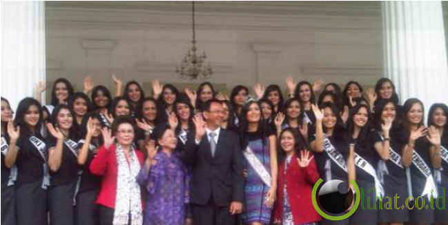 [lihat.co.id] - Ahok bertemu dengan 38 finalis kontes Puteri Indonesia yang datang ke Balai Kota, Jakarta, Senin (28/1). Ada finalis yang mengajukan berbagai pertanyaan dalam sesi tanya jawab.