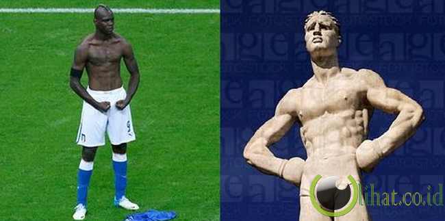 [lihat.co.id] - Striker AC Milan ini memesan patung dirinya sendiri. Posenya adalah ketika ia merayakan gol ke gawang Jerman di semifinal Piala Eropa 2012. Balotelli berdiri tegak, tanpa baju dan memamerkan otot-ototnya seperti Hulk.