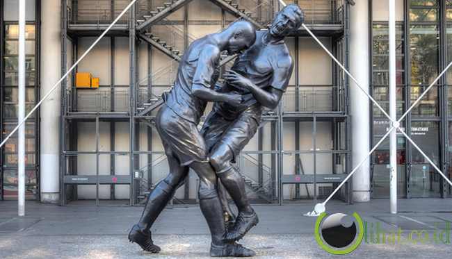 4. Zinedine Zidane dan Marco Materazzi [lihat.co.id] - Salah satu momen bersejarah di Piala Dunia 2006, yakni tandukan Zinedine Zidane kepada Marco Materazzi di final diabadikan dalam sebuah patung. Patung tersebut dipajang di pusat kota Paris, Prancis.